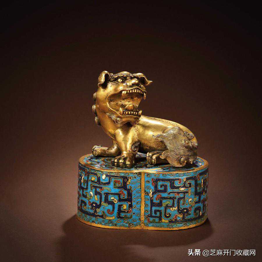 清康熙御制铜胎掐丝珐琅狮钮轴镇,尺寸:高18厘米,估价:RMB600,000~800,000