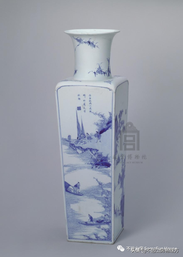 故宫博物院藏清康熙青花山水人物图方瓶“大明嘉靖年制”款