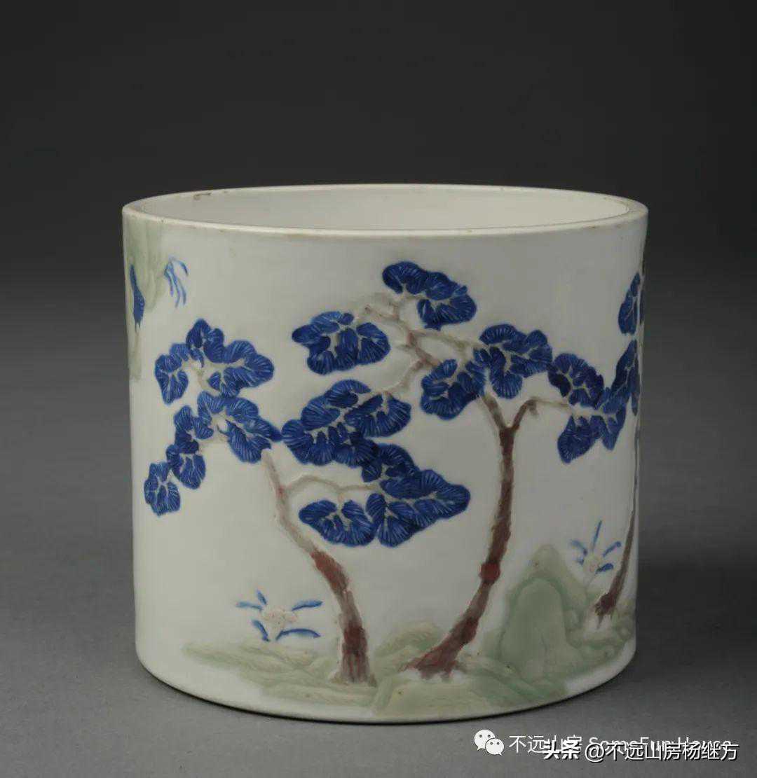 上海博物馆康熙官窑青花釉里红人物笔筒