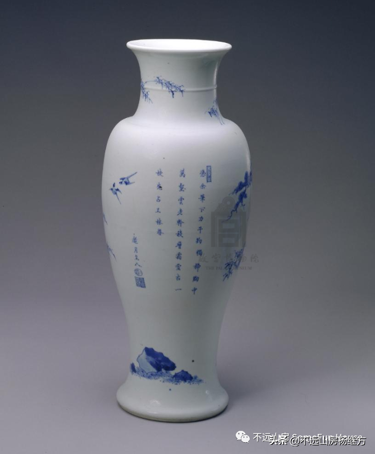 清康熙青花松竹梅纹诗句观音尊故宫博物院藏
