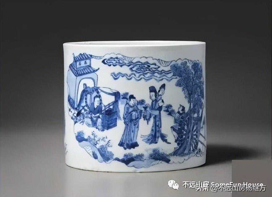 上海博物馆藏康熙官窑青花高士人物图笔筒