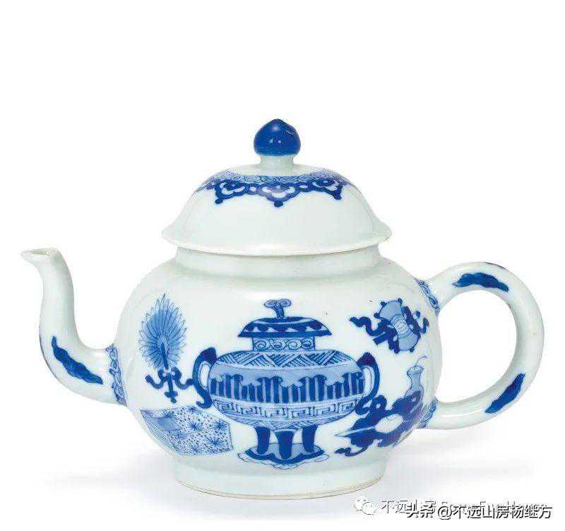 香港苏富比2020年11月27日博古五千清康熙青花朝歲清供茶壺《大明嘉靖年製》仿款成交价18900港元
