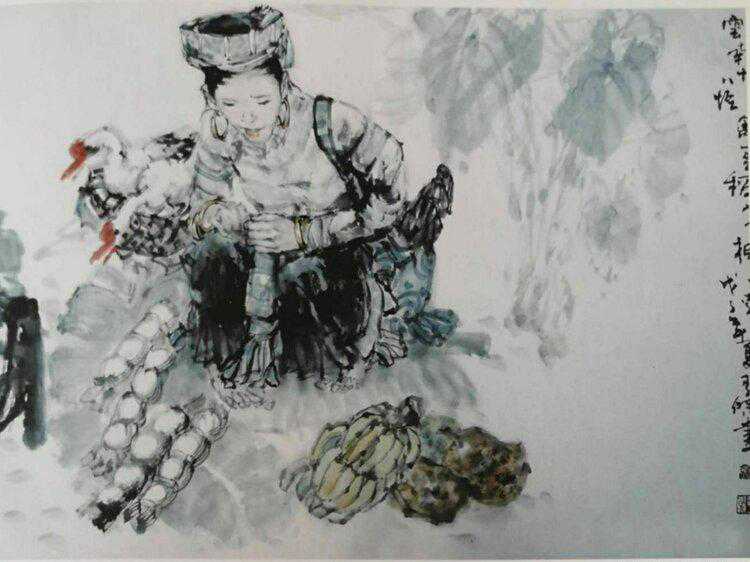 《云南十八怪鸡蛋稻草捆着卖》45x33cm2010年
