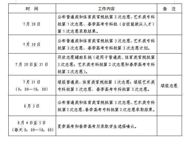 (注:上述进程安排中,所有类别征求志愿是否实施视缺额计划而定。)