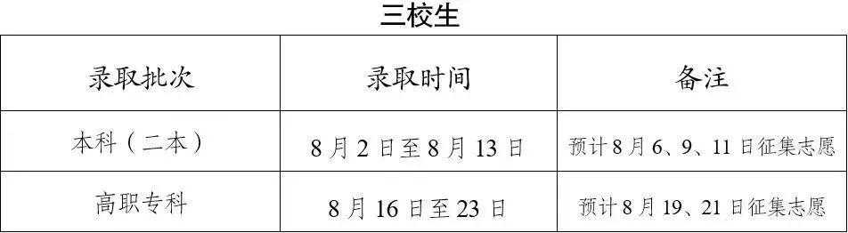 征求志愿投档8月3日8:30