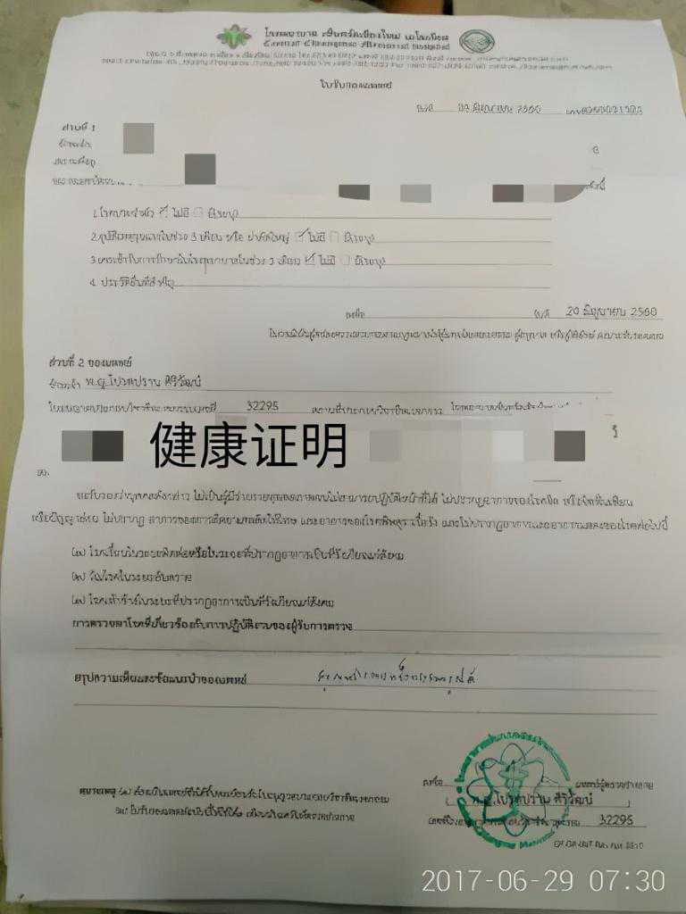 到医院或普通诊所开取考驾照要用的健康证明,一般收费价格大概为100泰铢,并须在开取证明1个月内完成驾照申请,否则过期无效。