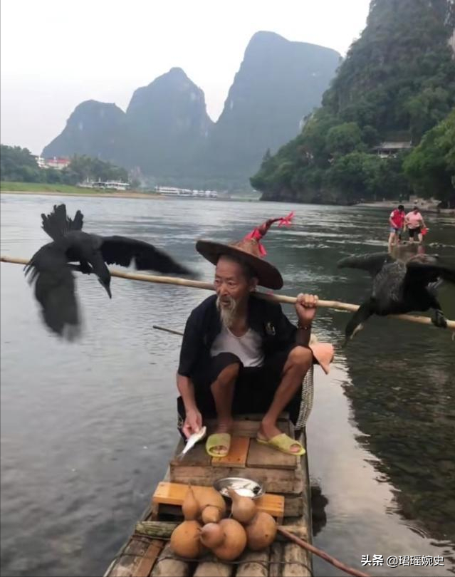 这两只鱼鹰也成为了黄六四出江捕鱼的好帮手,或许在行人眼中,手撑竹篙、肩擎鱼鹰,驾驶着渔舟在漓江上捕鱼的黄六四好生潇洒,但其中的辛酸也只有他能独自体会。