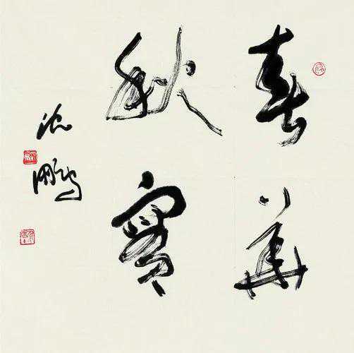 沈鹏的这幅字墨色干枯,线条婉转,苍浑古茂,颇具功力。