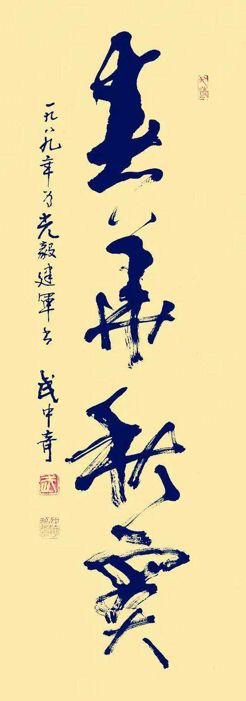 武中奇的这幅字墨色干燥,字形遒美,笔力雄健,沉雄威武。
