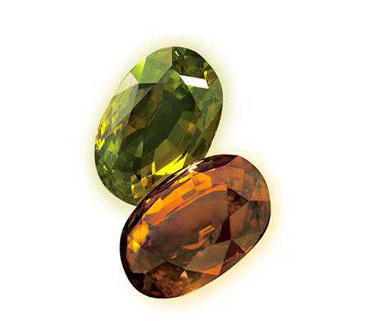 榍石:有华美的外表,光色散高过钻石,色影独特,多色性强。