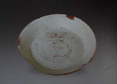 焦作市博物馆宋代白釉的刻划折枝花卉纹盘