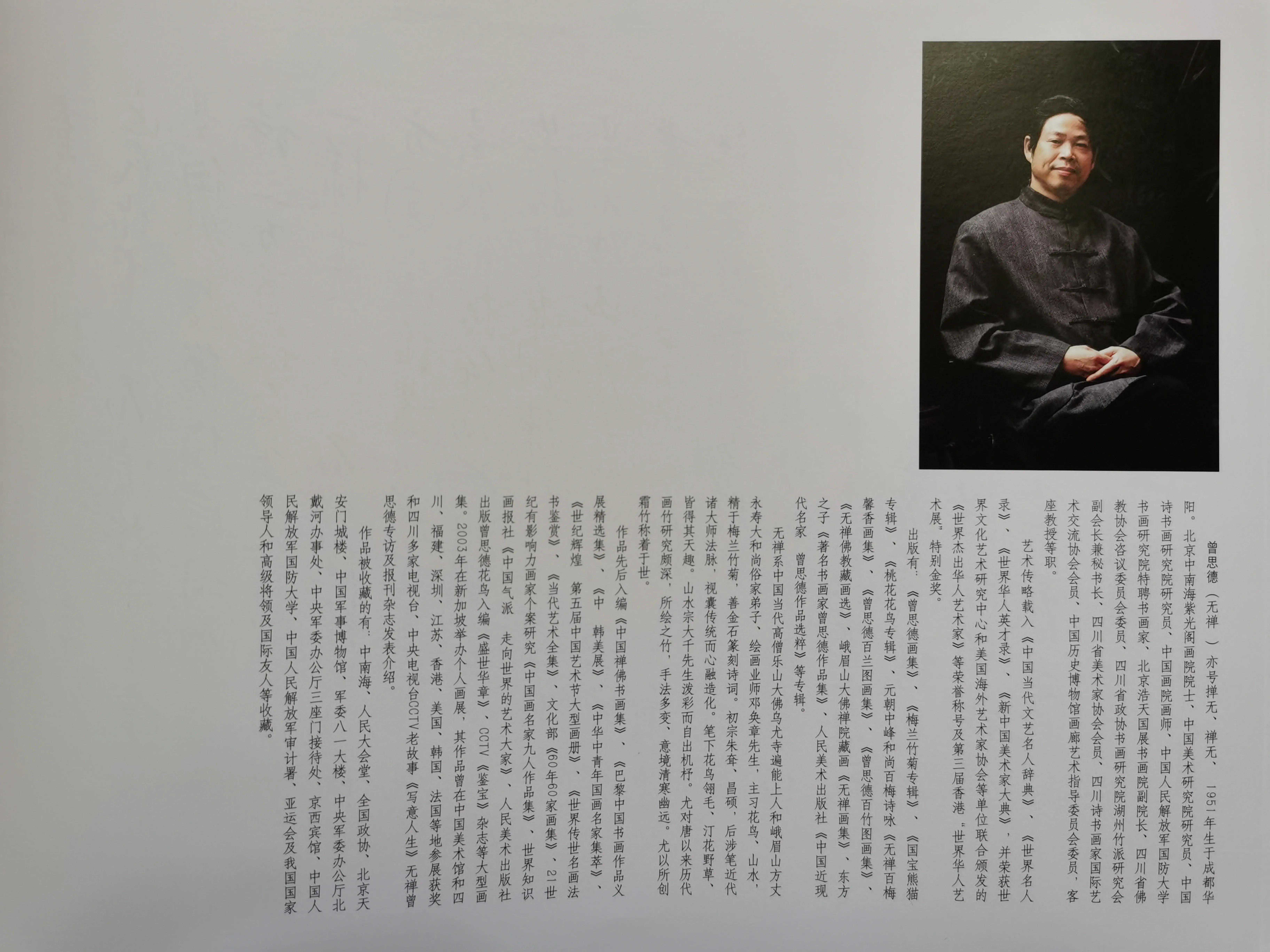 无禅(曾思德)1951年生于成都华阳。北京中南海紫光阁画院院士、中国美术研究院研究员、中国诗书画研究院研究员、美国国际文化科学院院士、英国牛津艺术学院客座教授,博士生导师。