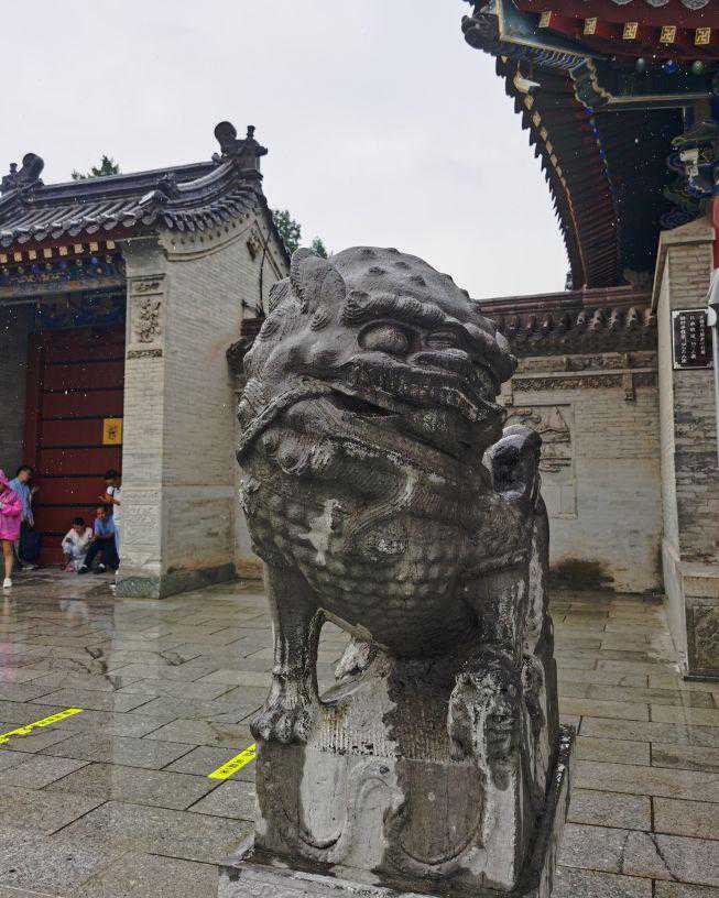 靠外边的两尊狮子东侧一尊是清乾隆五十年(公元1785年)雕造,西侧一尊是民国19年(公元1930年)雕造。这两对石狮高度在1.7米以上,每尊重量至少也在250公斤以上。