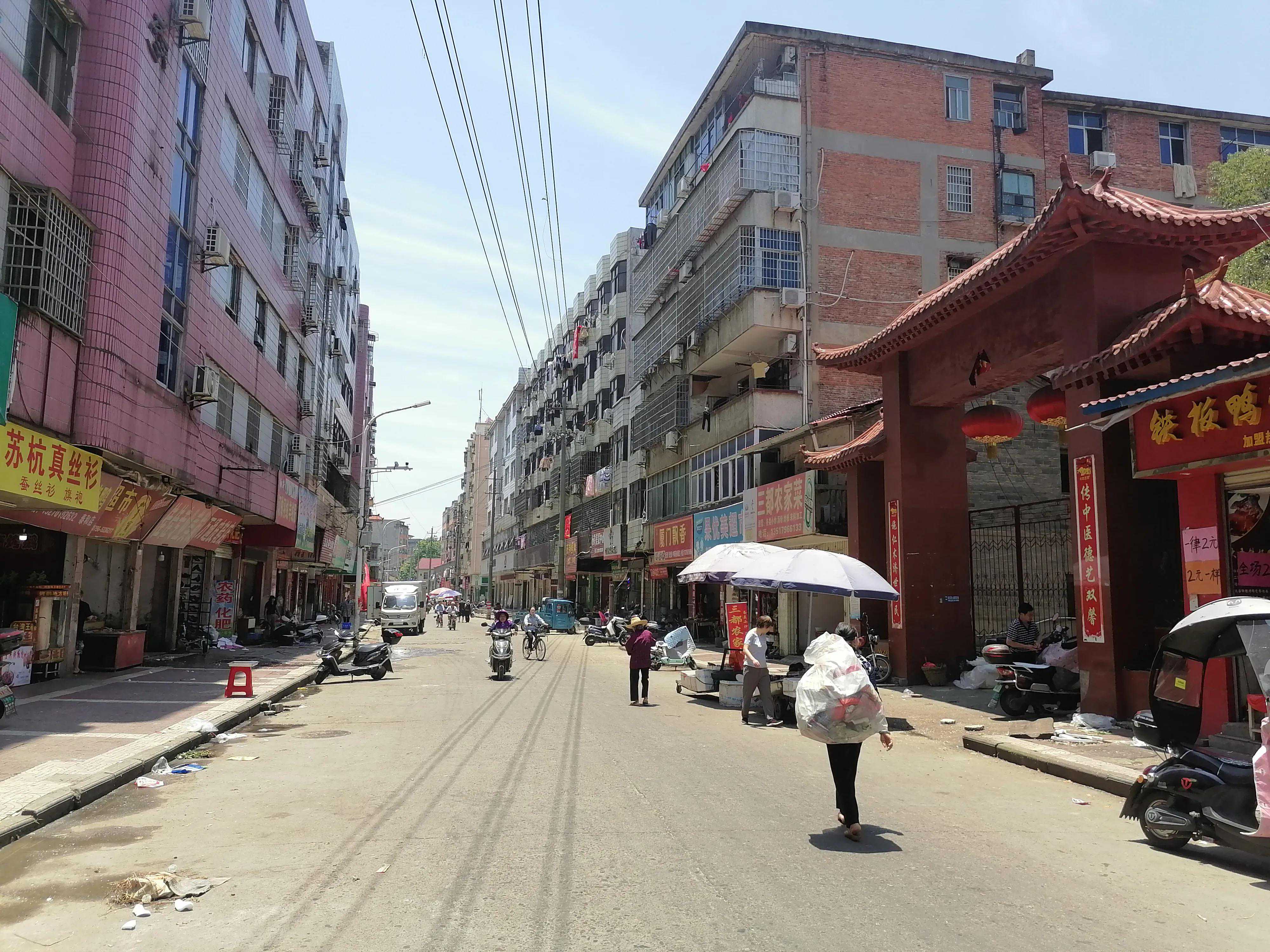 这是胜利路,在这条街上,有两座古迹,一座是七星伴月(县城内有七口铁井头(群众这么叫的),与文庙内的泮池相配,称七星伴月为城内一景)之一的铁井头,被埋于地下。一座是天主教堂,为泰和县人民政府旧址,藏于屋后。