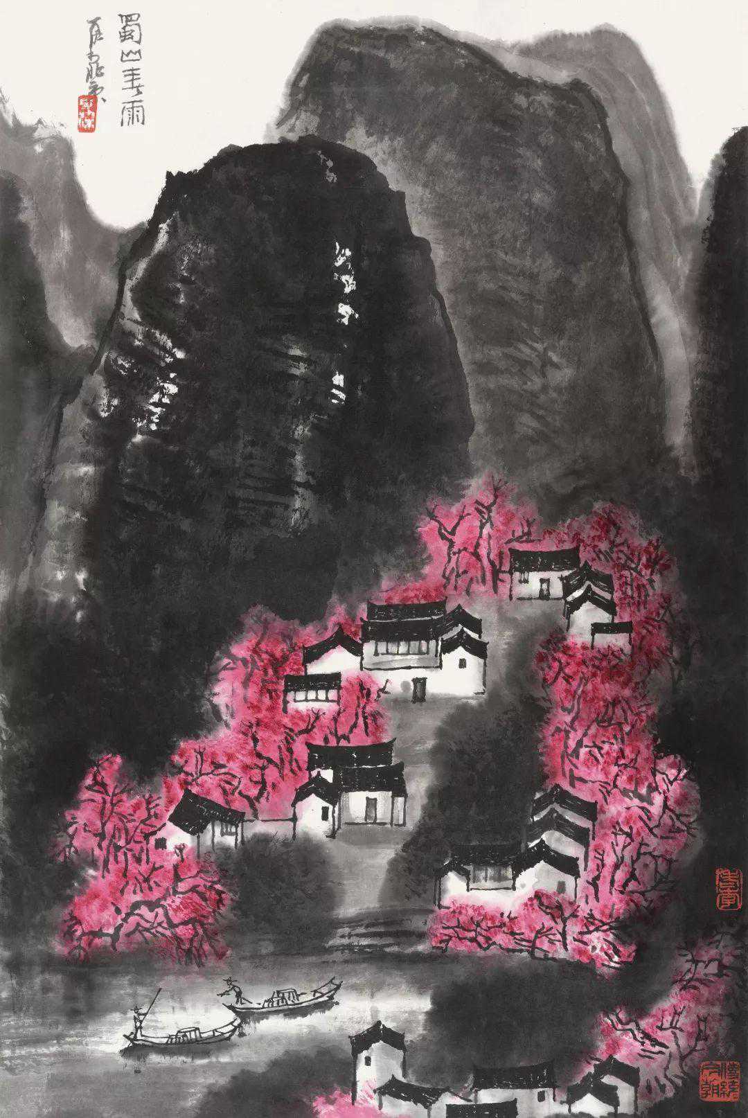 李可染《蜀山春雨》