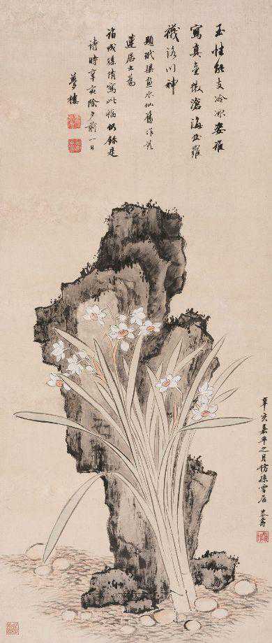 潘恭寿与清代大书法家王文治的友谊非比寻常,“每画必王梦楼题之”。从潘恭寿20多岁起直至去世,在近三十年的时间里,两人一直保持“潘画王题”的合作关系,堪称画史佳话。这是一幅典型的“潘画王题”的作品。