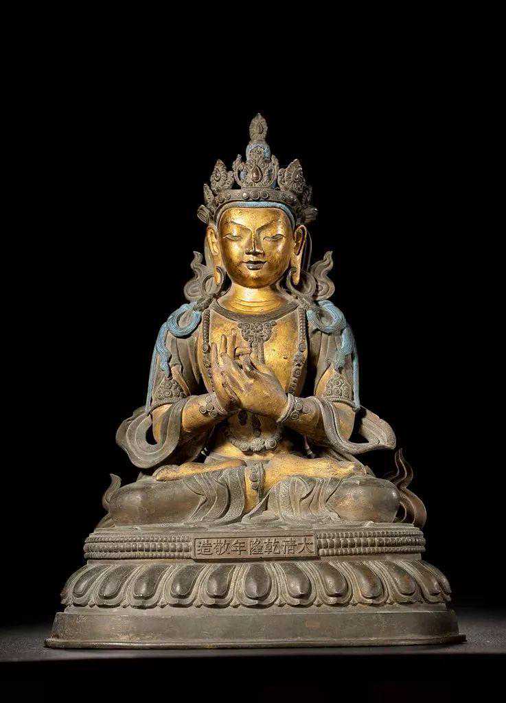 为典型的乾隆时期宫廷造像风格。其面相、服饰、身姿动态、铜质泥金皆遵循一定的仪轨,风格统一,毫厘不差,是乾隆盛世雄厚的国力和集权思想背景中的信仰呈现。