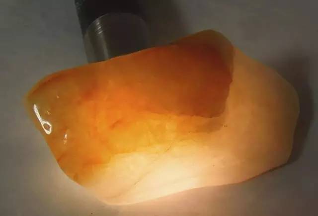 手电筒光源紧贴玉石表面直射,主要是看玉石的质地、浑厚度。