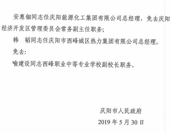 姚海清任天水市政府国有资产监督管理委员会副主任,免去其天水市工业和信息化局副局长职务;