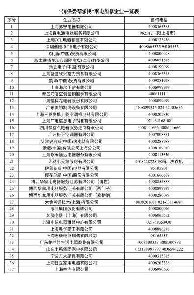 一、消费者可拨打12345市民服务热线、962512上海家电服务热线、登陆上海家电服务热线网站“”或市消保委官网“”的“消保委帮您找”栏目等渠道查询家电维修企业信息;