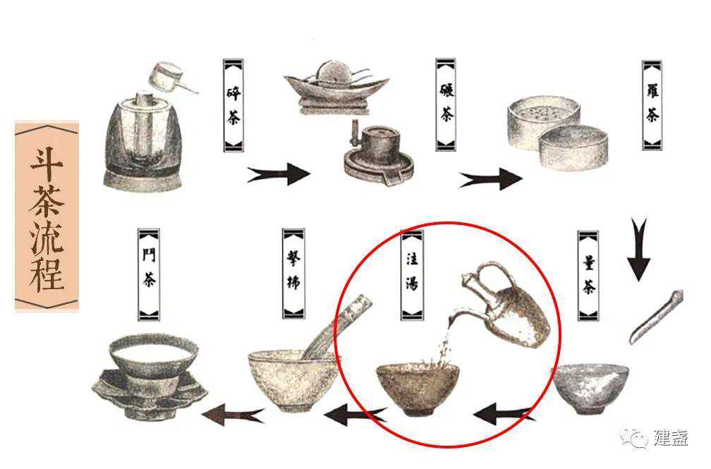 此外,撇口盏的造型适宜啜饮,盏浅口大,易挥发热量,方便入口;比束口、敛口更能快速自盏内释出蒸气,嗅觉上的茶香体验自是不同的。因茶百戏的流行,宋式撇口盏曾风靡一时。