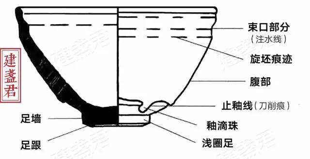 故工匠在拉坯时于盏口下方约1cm处,设计一圈向内陷的浅浅凹槽,即注水线,这是束口盏的最大可识别性特征。