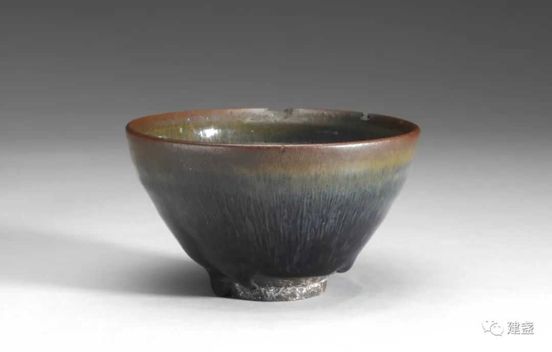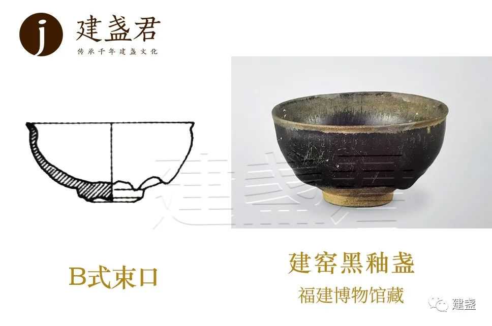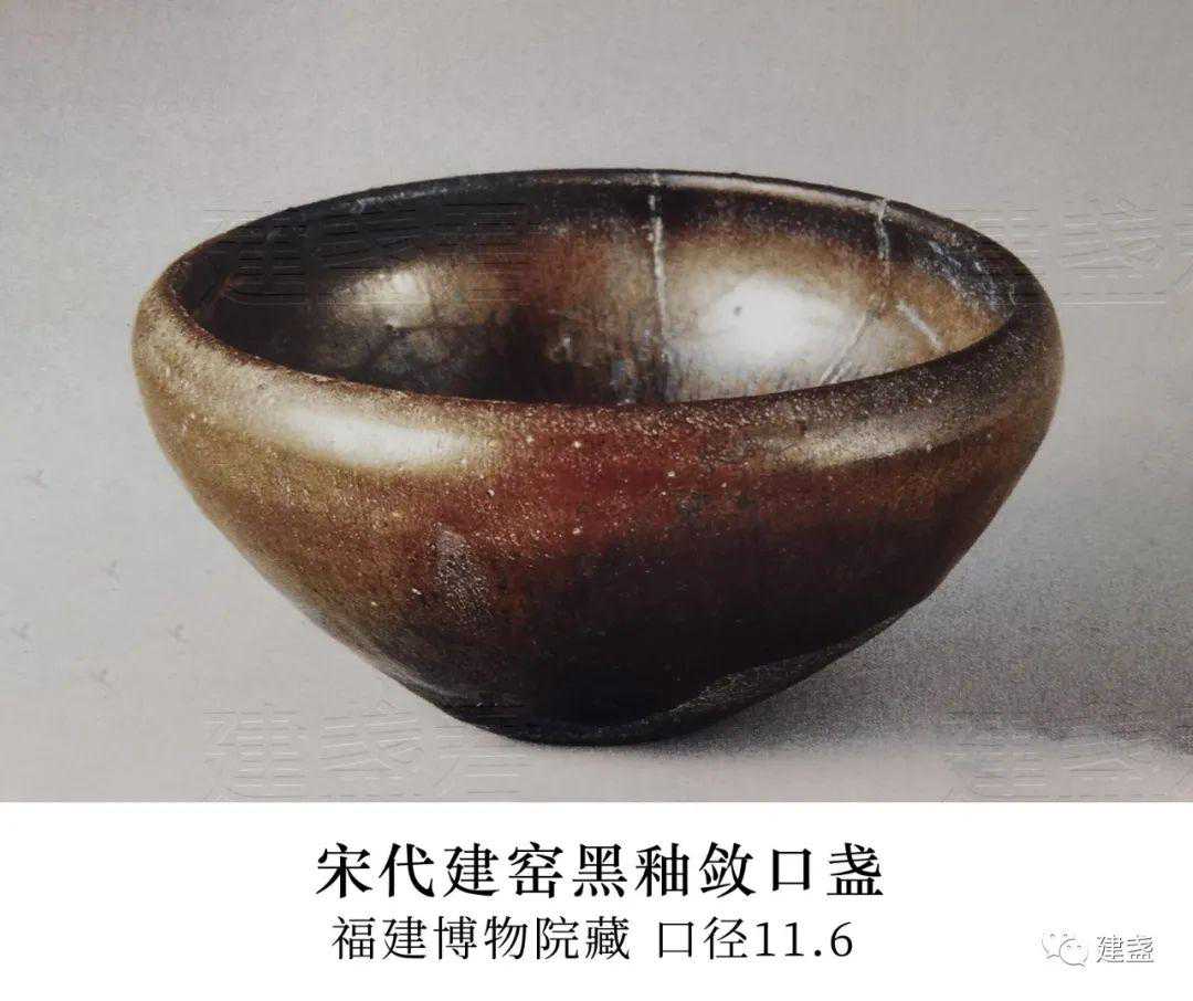 ▲福建博物院藏的建窑黑釉盏,B式束口盏标准器,口径10.8cm,小型器,窑址出土,灰黑胎、深圆腹,釉色黑润、口沿铁红色