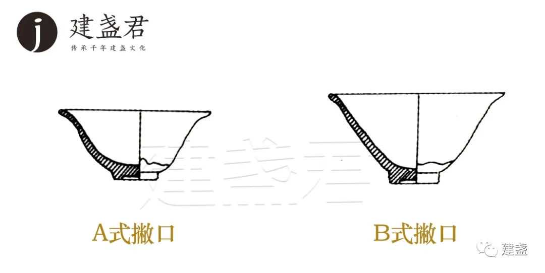 就外形来看,与牵牛花或漏斗有些类似。A式撇口造型丰满,较之,B式撇腹部深,故造型较挺拔。此类型盏多见于中、大器型。
