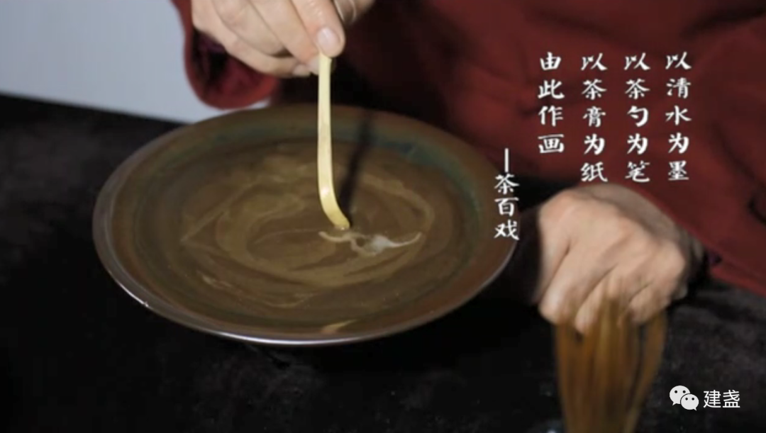 ▲茶百戏传承人章志峰现场点茶绘画