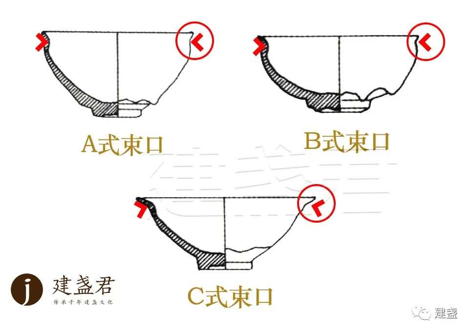 根据考古类型学,以口沿结合腹部、足底变化,宋代建盏器型分为束口、敛口、撇口、敞口,四般器型,它们各有不同之处,亦有不同之妙用。