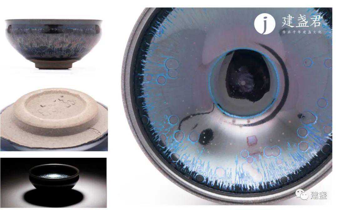 ▲陆金喜老师作品-曜变尊盏(晦翁),口径10.7cm,小型器物,盏内外均施黑釉,盏内斑核耀眼