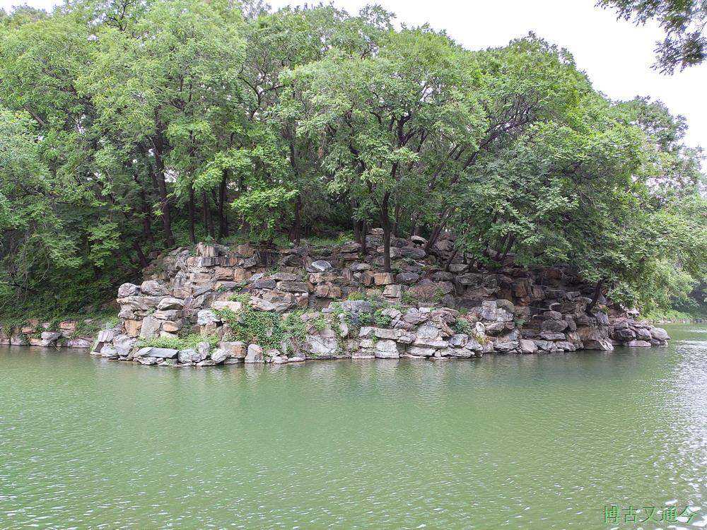 它在后湖沿岸,湖对面有一片假山,那里是游客禁止区域,后湖的水道在这里变窄。