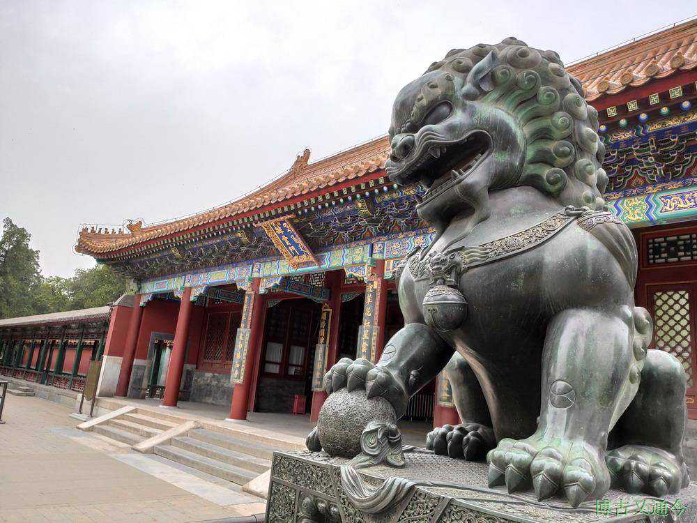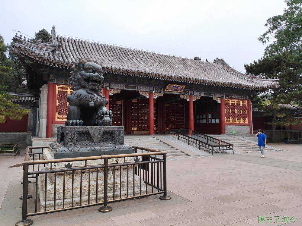 到达排云殿,这是上佛香阁的正门,门前有一对铜狮子,造型最为经典,形象威武,工艺精湛。