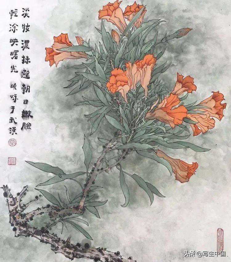 《淡妆浓抹迎朝阳》国画60x50cm叶晓秋