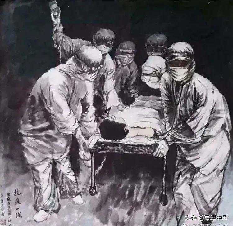 《抗疫逆行者》中国画文麒