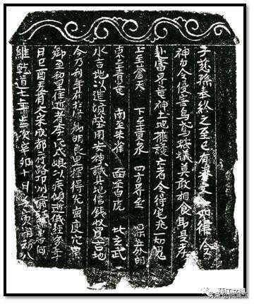 1971年,蒲江县寿安镇董口村四组出土李氏戌娘买地券。该券,白砂石质,呈碑形,券石上端左、右抹角,额部镌刻卷云纹图案,下端立于基座之上。高40.5cm、宽33cm、宽3.4cm。券面竖刻10道单线栏,使券面形成10行线框。券文从左至右刻于线框内,行15至19字。全文共171字,字径0.8至2.2cm。该券全文:“维乾道七年岁次辛卯十月壬寅朔初八/日己酉爰有大宋成都府路邛州蒲江县善何/乡至和里住逝者李氏戌娘以疾倾逝俄经多年/今乃利年在于当乡明良里择得兑岗庚穴巽/水吉地以造坟茔用安神识其地信钱收买吉地/东至青竜南至朱雀西至白虎北〔至〕玄武/上至苍天下至黄泉四方界至标立分明/赴当界竜神土地拥护亡者令得宅兆一切鬼/神勿令侵害鸟鸢蝼蚁莫敢相食即是孝/子慈孙奉终之至已有券文一如律令”。该买地券,立于乾道七年,即1171年,为南宋孝宗年号。墓主人李氏戌娘是善何乡至和里人,墓地安葬在善何乡明良里。今寿安镇董口村地带,南宋时为善何乡明良里所辖。