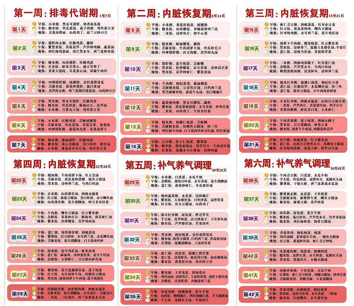 但这42天里,身体恢复的重点不同,饮食上也有不同讲究:
