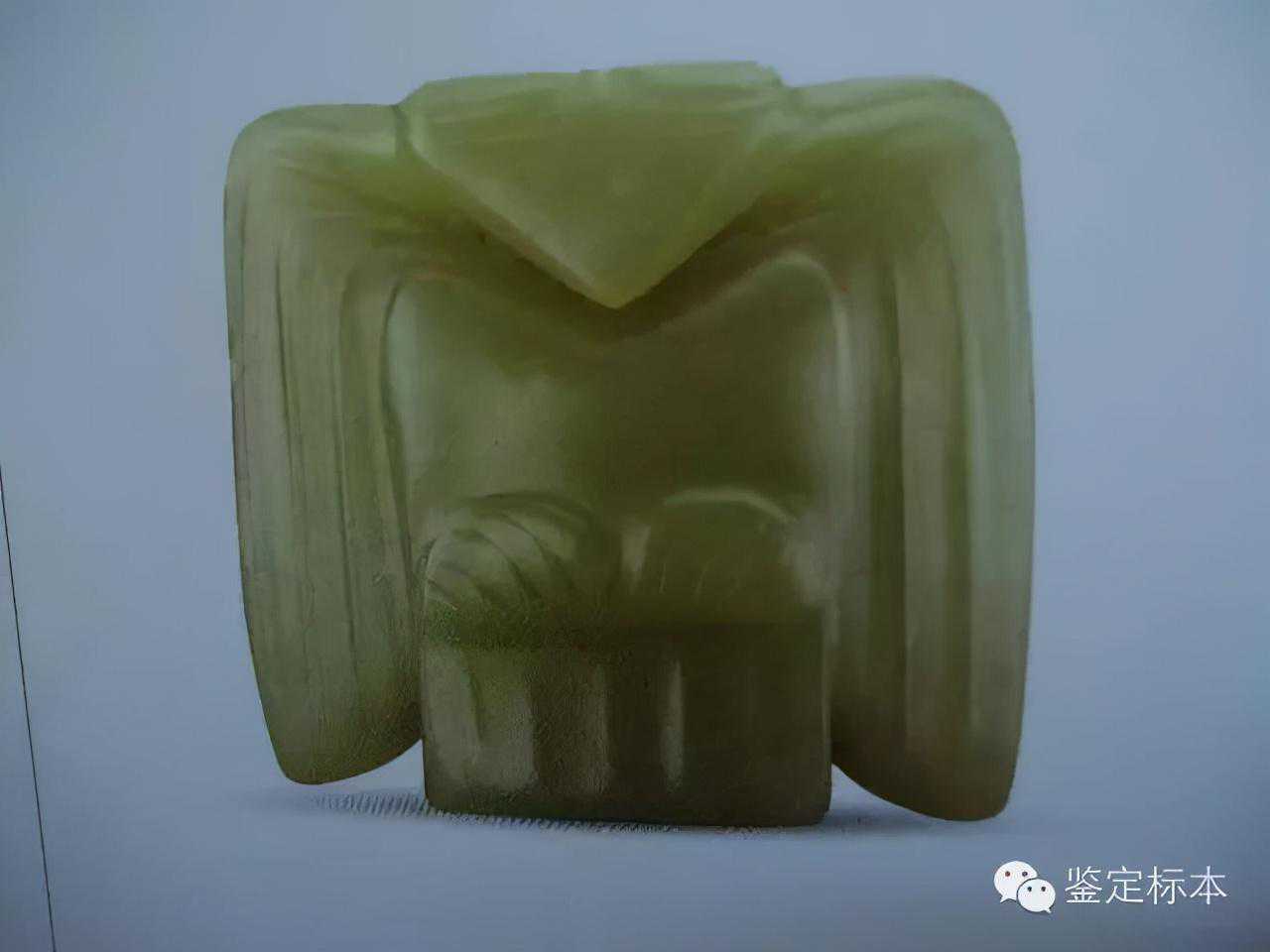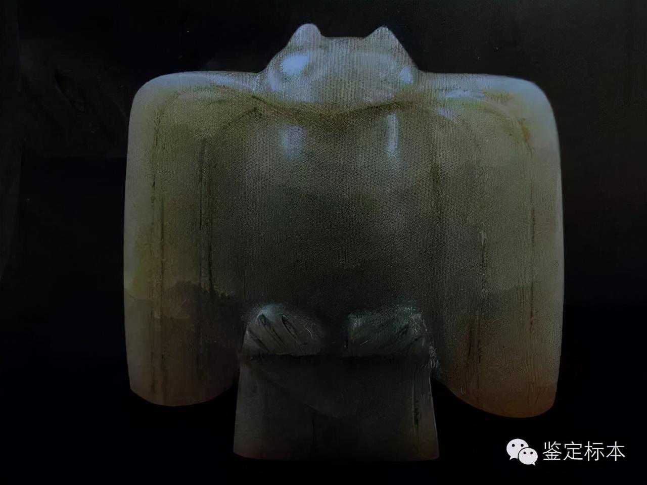 無耳為鷹,是太陽的象征,凸眼,折肩,雙爪在腹部,背部有兩個隧孔,典型紅山文化特征。