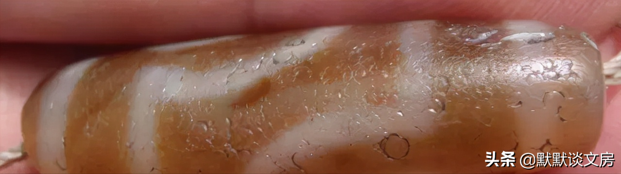1.第一眼的感觉,整体的形状、纹饰、包浆,这第一判断必须是立足于多年对老玛瑙老天珠的上手学习的,这条不是初学者能掌握的,知识积累不够,眼力不够情况下是很容易判断失误的。