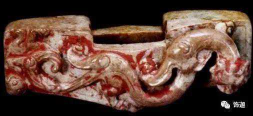 在出土的古玉中人们发现有些红色的沁色,人们将其原因分为四种,一是受朱砂侵染,二是血水浸染,三是纺织品的颜料染色,四是铁沁。现在分别来看,先看朱砂沁。