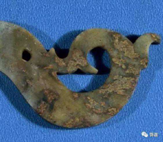 下面这块玉器可见底下一层受地表水沁变色。
