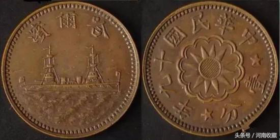 正面中央铸国民党党徽图案,外环铸双线连弧形纹饰,上缘铸纪年文字“中华民国十九年”,下缘铸纪值文字“壹分”及两颗五角星;背面铸一兵舰图案及纪地文字“哈尔滨”。