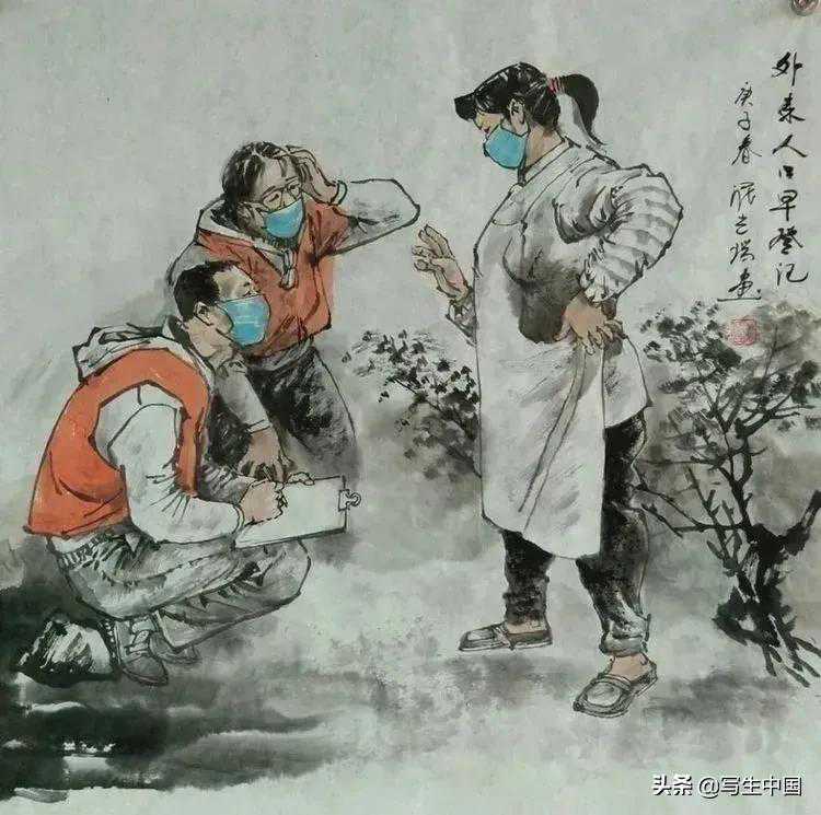 《社区防控员》中国画蒋洪亮