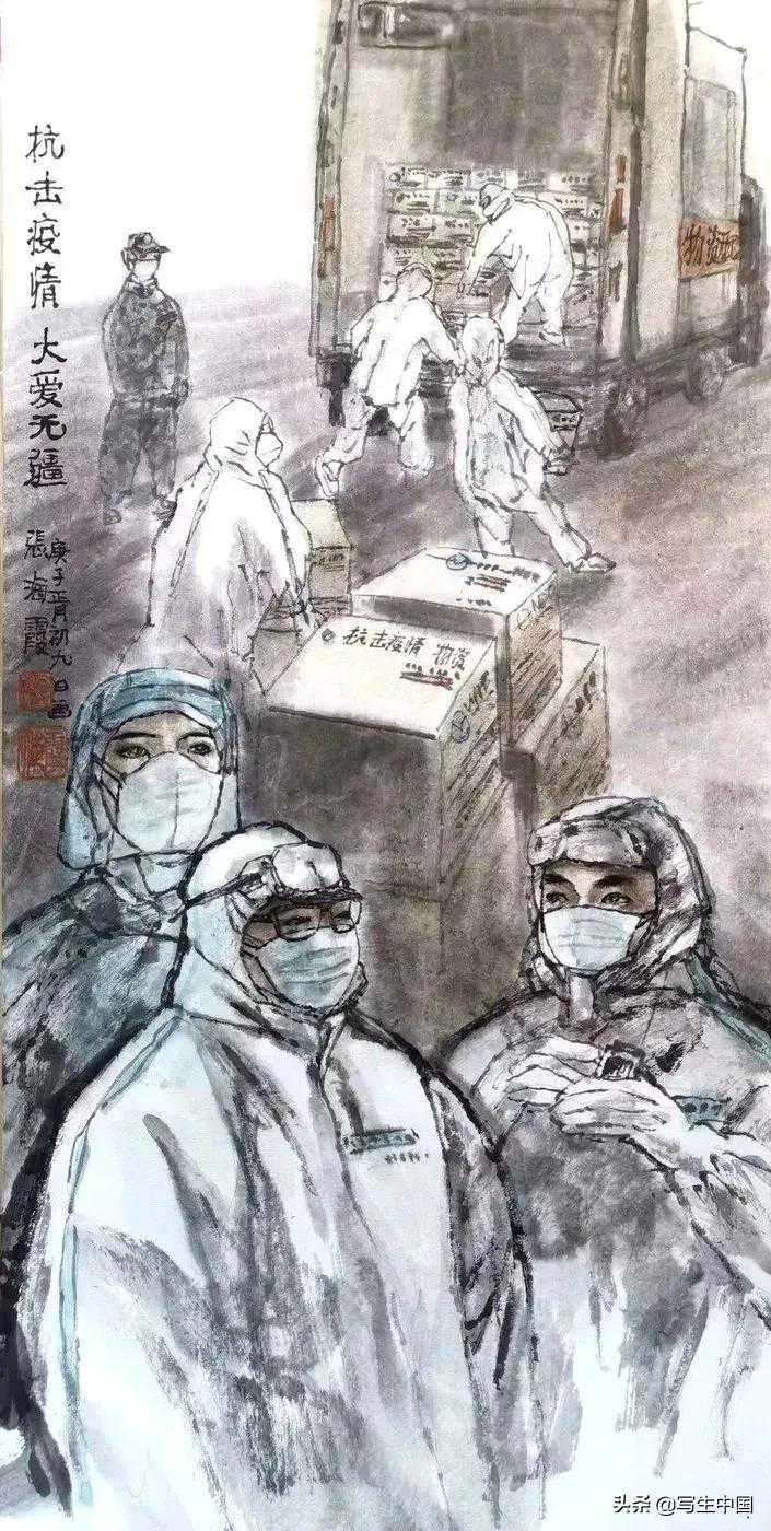 《抗击疫情,大爱无疆》国画四尺整张张海霞