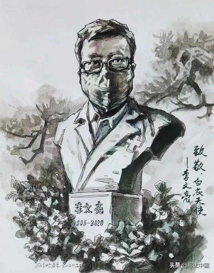 《致敬白衣天使李文亮》水墨刘世群