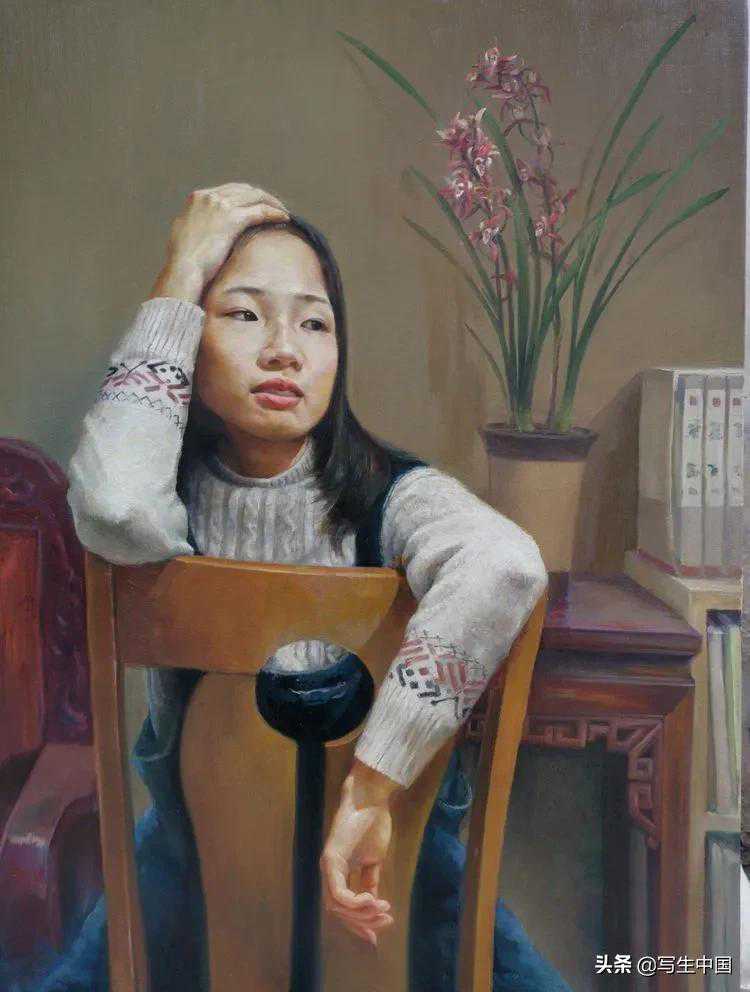 《女青年肖像》油画80X100cm欧友进