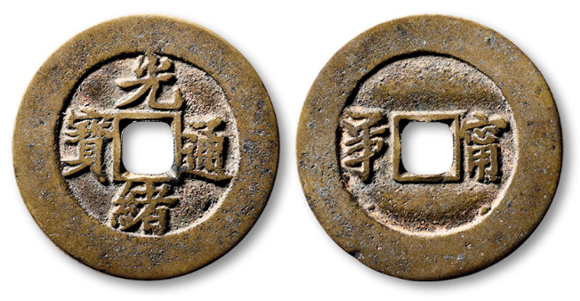 清“光绪通宝”背满汉“宣”小字版套子钱一枚,直径:27mm,极美品