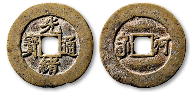 清“光绪通宝”背满汉“河”小字版套子钱一枚,直径:27.9mm,极美品