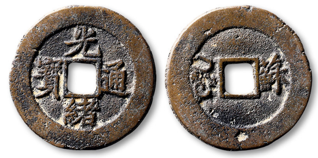 清“光绪通宝”背满汉“同”小字版套子钱一枚,直径:27.2mm,极美品